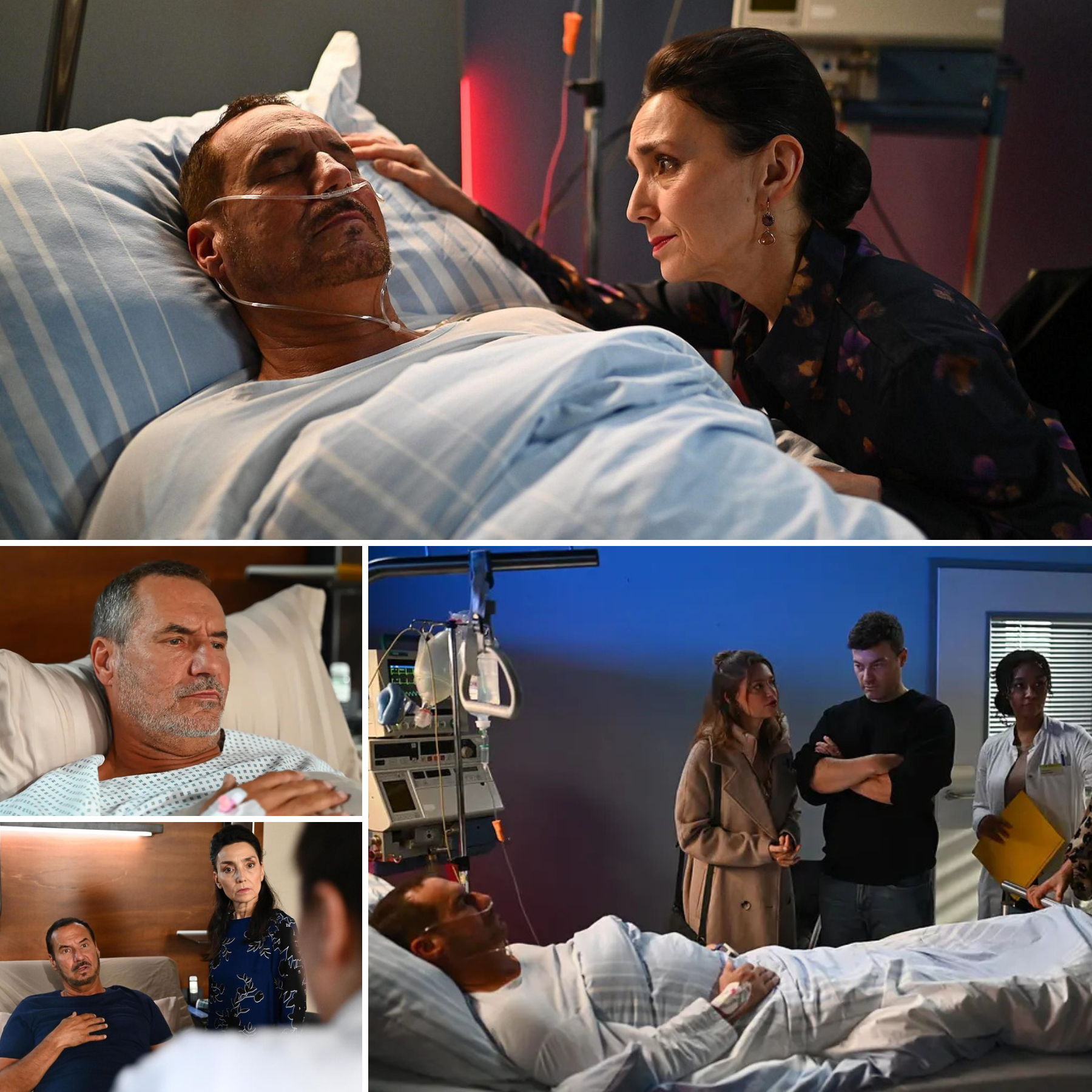 Später sitzt Simone allein an Richards Bett. Der Raum wirkt schwer, fast erstickend vor Sorge. Sie sucht Halt in der Stille, blickt aus dem Fenster, ringt um Fassung.