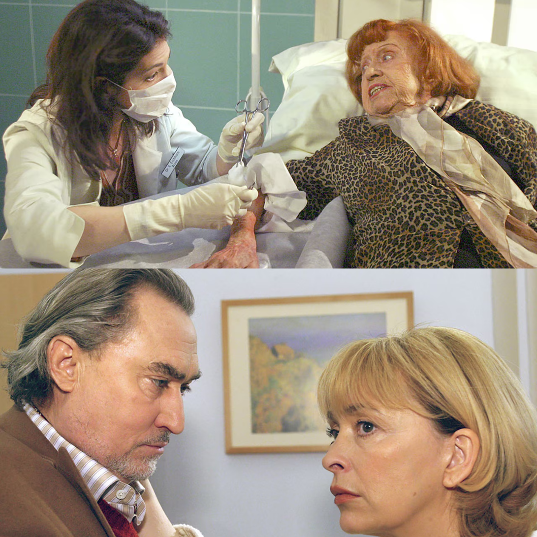 Dr. Harald Loosen und Vivienne Kling nehmen die Erstversorgung bei Doris Weber vor. Die resolute Dame beteuert zwar, dass