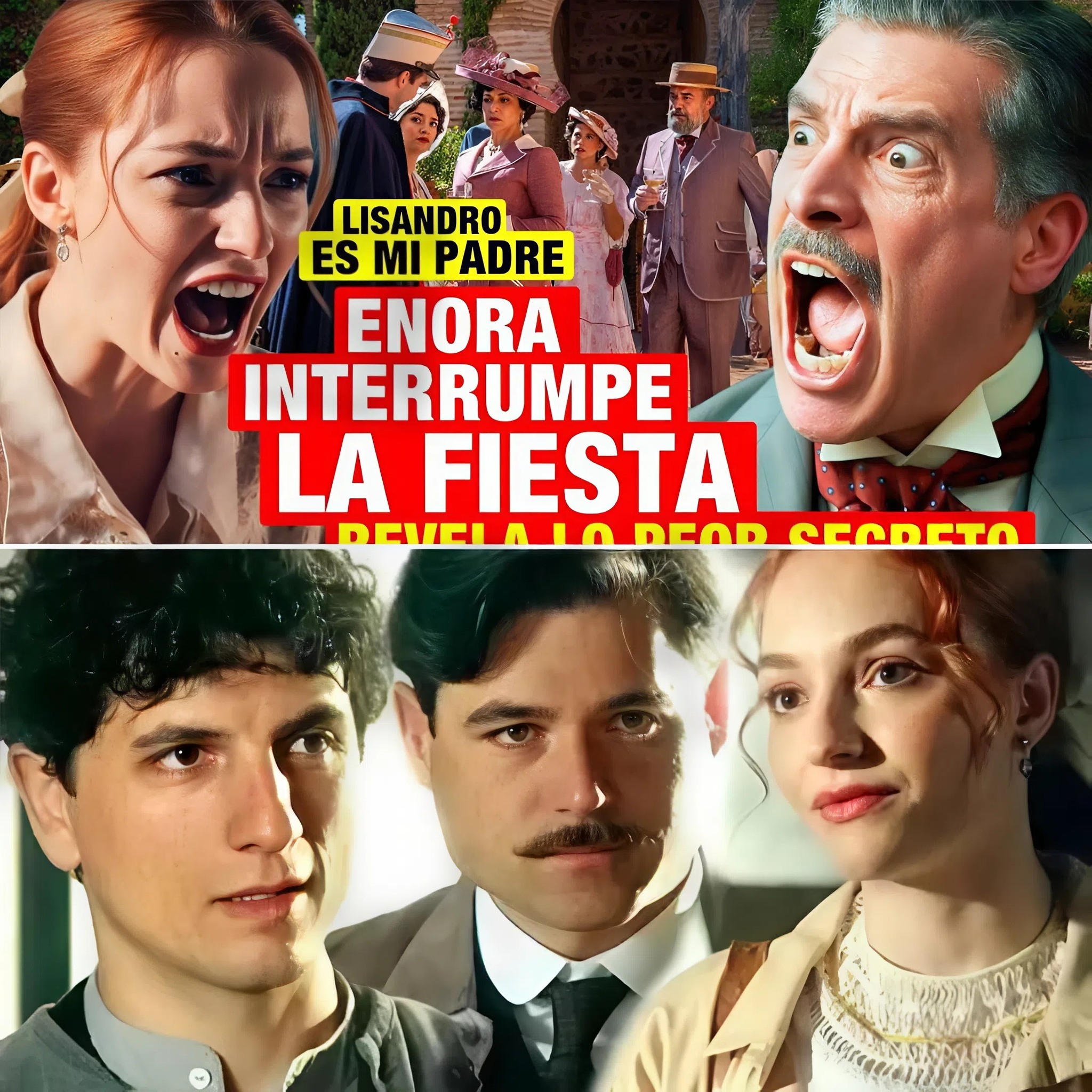 El nuevo capítulo de *La Promesa* estalla con un giro completamente inesperado que deja a la mansión en silencio absoluto. Lo que debía ser una noche de celebración elegante, llena de música, luces y brindis por el futuro de Lisandro, se convierte en el escenario de la revelación más impactante que jamás haya vivido la familia. **Enora**, una joven cuya presencia en la tenuta siempre generó preguntas sin respuesta, irrumpe en plena fiesta para soltar una verdad que nadie estaba preparado para escuchar: **Lisandro es su padre**.
